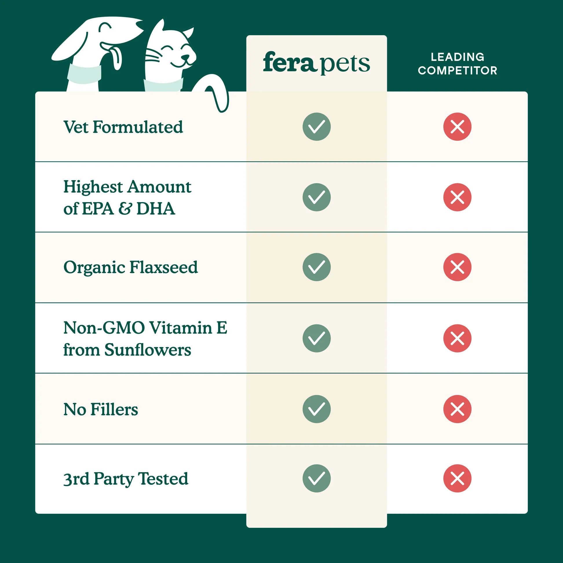 This full spectrum Omega profile of 3s, 6s and 9s, supports healthy vision and retinal development, a healthy immune system, heart, joints, and of course, skin and coat.
