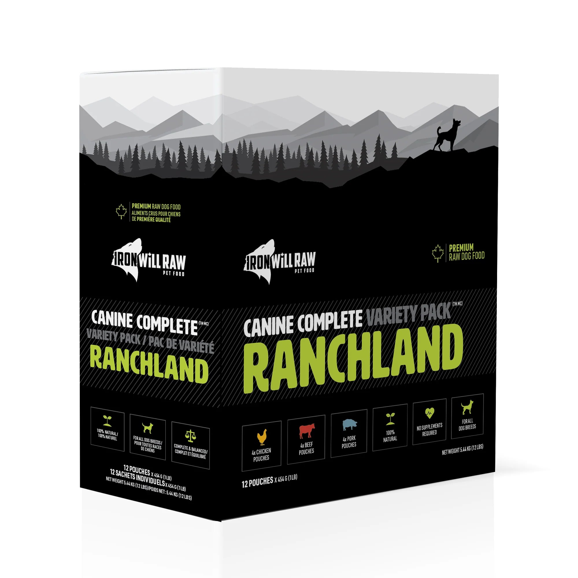 Each 12 lb Variety Pack offers a selection of THREE Canine Complete Dinner formulas. Our Variety Packs make raw feeding easy and convenient. Just grab your pet's favourite combination and you're all set!Our Ranchland Variety Pack is a combination of the Canine Complete Dinners that will be sure to win your pup's heart. You can feel confident that you're providing the best for your best friend - who says raw feeding needs to be complicated?Iron WiIl Raw Canine Complete Dinners for Dogs are formulated to meet the AAFCO Dog Food Nutrient profile for Adult Maintenance.Case Includes:✓ 4x Canine Complete Chicken & Beef Dinner✓ 4x Canine Complete Beef Dinner✓ 4x Canine Complete Pork Dinner