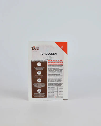 Product Details: It’s Thanksgiving everyday for your dog with our turducken meal. This dinner is a mixture of Turkey, duck and chicken. All our poultry is locally sourced and is free of hormones and antibiotics.