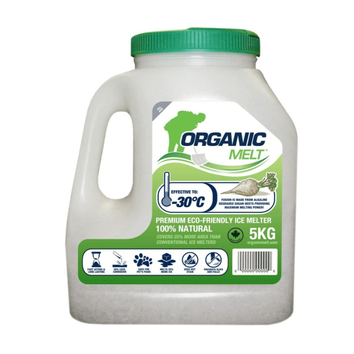 This ULTRA STRENGTH ice melter is effective down to extremely cold temperatures and eco-friendly. Organic Melt is enhanced with Fusion, our patented organic and biodegradable deicing liquid derived from degraded sugar beets, for maximum melting power.Finer granules of salt are used in order to speed up the melting process and to reduce the amount of material that can be tracked inside buildings. Organic Melt is less harmful to the environment than conventional ice melters. More ice is melted with less material plus Organic Melt stays active for a longer period of time, thereby reducing the frequency of re-applications which also translates into less damage to all surfaces and vehicles.Organic Melt has been used across Canada by municipalities, snow removal contractors, and commercial & residential clients since 2007 and is widely recognized as the leader in premium eco-friendly ice melters.