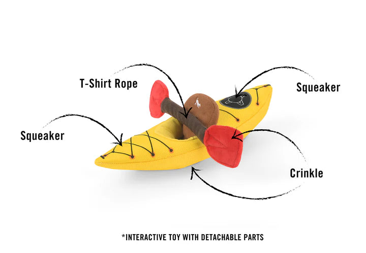 Paddle into a world of playtime with P.L.A.Y.’s Camp Corbin K9 Kayak toy! This whimsical watercraft replica features crinkles and squeakers, and for added fun, a detachable paddle comes equipped with a t-shirt rope. This interactive toy promises hours of fun for your furry adventurer!