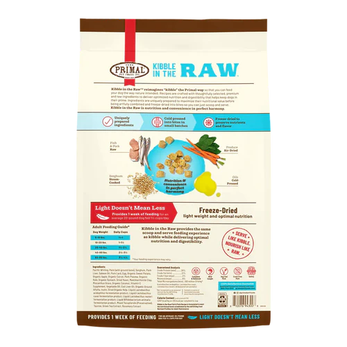 Kibble in the Raw reimagines “kibble” the Primal way so that you can feed your dog the way nature intended. Recipes are crafted with thoughtfully selected, premium and raw ingredients to deliver optimized nutrition and digestibility while providing the same scoop and serve feeding experience as kibble.